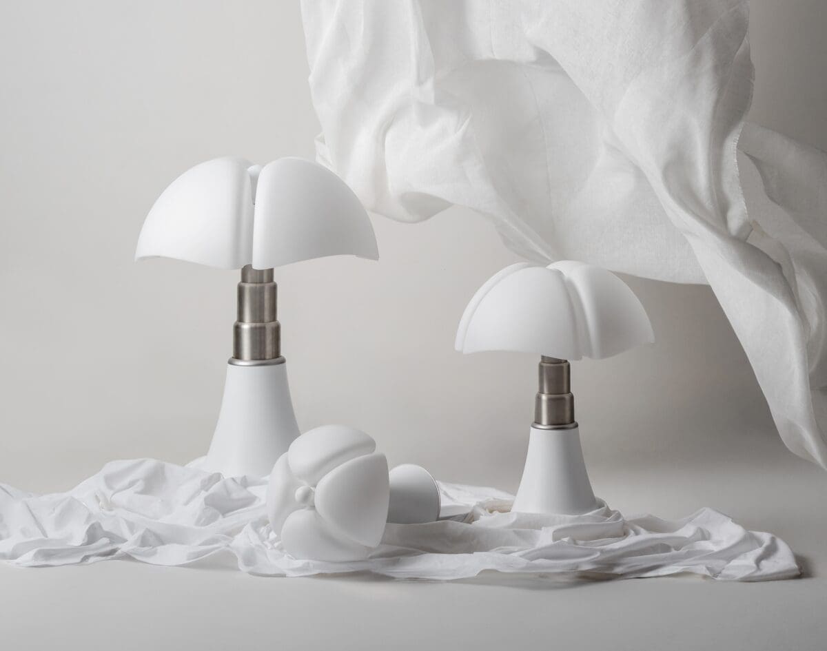 Pour ses soixante ans, la lampe Pipistrello revêt une nouvelle robe immaculée. Conçue en 1965 par Gae Aulenti pour Martinelli Luce, cette icône du design s’est imposée par son profil unique et son ingénieuse technologie. Inlassablement réinterprétée – en taille, en matériaux, en couleur –, elle démontre une fois de plus sa modernité avec une édition limitée « All White ». Si certains diront qu’on la voit trop, qu’elle est partout, cette nouvelle version pourrait bien faire taire les mauvaises langues. Cette finition blanc mat vient rehausser la pureté des lignes si singulières de Pipistrello, soulignant sa beauté intemporelle et hypnotisante. Les 200 premiers exemplaires de chaque version (classique, moyenne et mini) sont numérotés et ornés d’une gravure « 60 ans », avec un cristal Swarovski incrusté. Un hommage élégant et exclusif qui risque bien de faire craquer quelques amoureux du modèle.