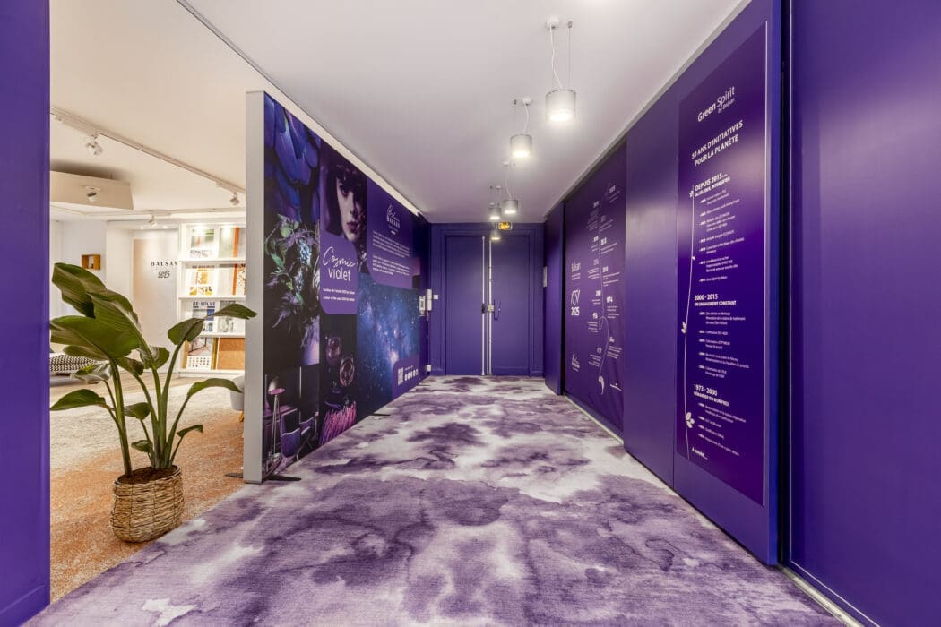 Au cœur de cet événement, Cosmic Violet, couleur phare de 2025, incarne un équilibre entre mystère et raffinement. Cette teinte vibrante sublime notamment Encre, un motif inspiré de l’aquarelle, désormais décliné en lé, dalles et tapis. Autre innovation, les dalles de bureau Voyager, pensées pour les espaces de coworking, et Nexus Bridge, une solution élégante pour structurer les lieux de passage.