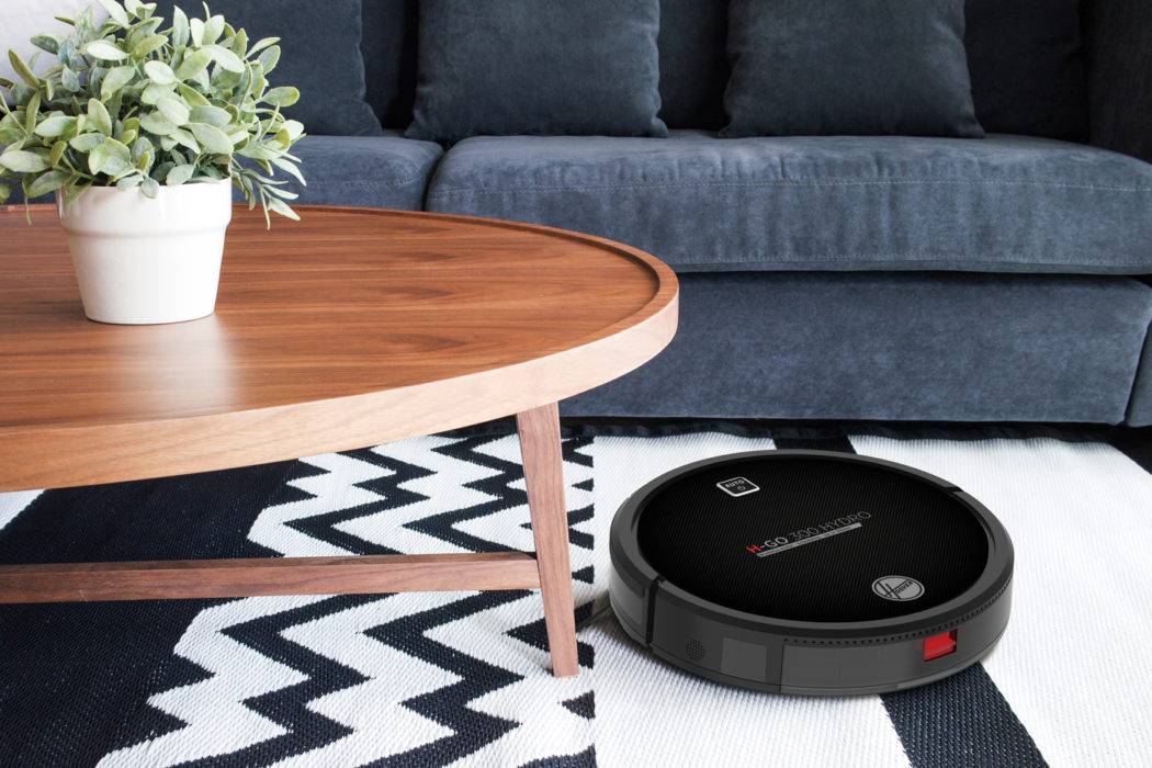Deux en un. Nettoyage intelligent pour cet aspirateur-robot tout-terrain de petite taille, qui offre une double fonction d’aspiration et de lavage, « HGO-300 », 299 €, Hoover.