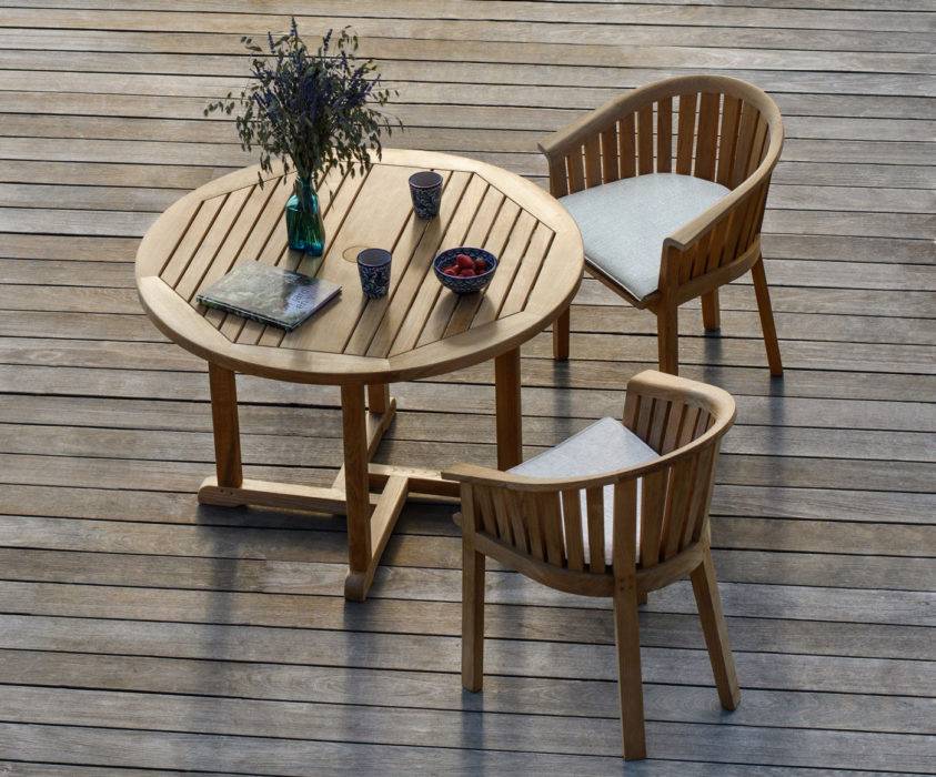Une surface en teck ajouré à laquelle répondent des lignes enveloppantes, un coussin d’assise en acrylique blanc cassé… Conçu par Christophe Delcourt, ce fauteuil en teck massif oscille élégamment entre tradition et modernité. Fauteuil bridge « Exeter », L64 x H79 x P55 cm, 960 €, Tectona.