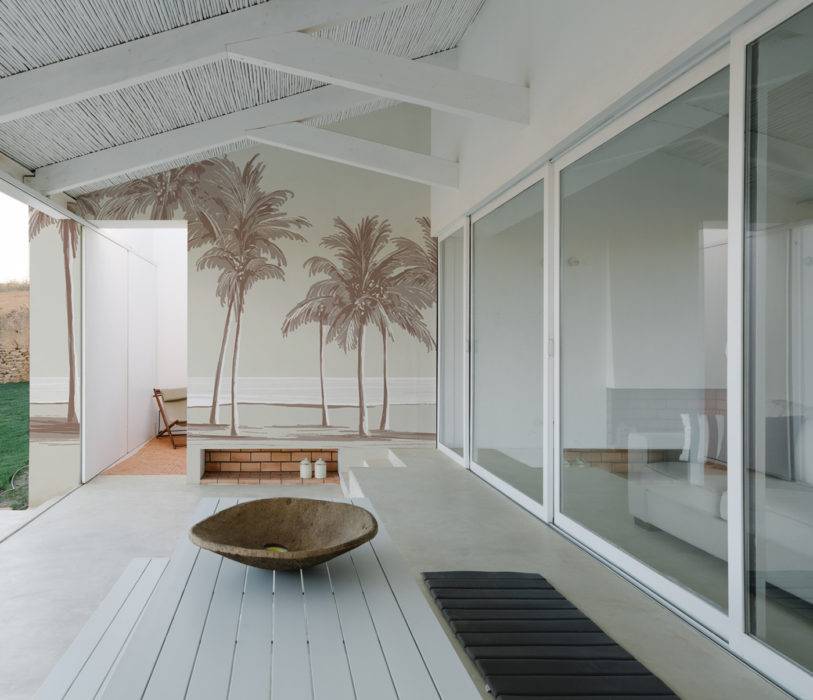 Confectionné à 58 % de matériaux bio-sourcés, sans chlore et sans phtalates, ce papier peint vinyle adhésif est résistant aux UV, aux températures élevées, à la décoloration et à l’humidité. De quoi revamper les murs de la terrasse ou du balcon, en un tour de main. Papier peint « Palm Trees », 149 €/m2, Acte Déco.