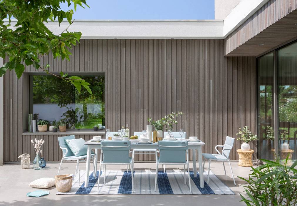 Table factory à la couleur poudrée, papier peint palmier, baladeuse moderniste en cannage… Le mobilier et les accessoires outdoor s’inspirent des codes de la pièce à vivre pour combiner style, élégance et confort. Décryptage des tendances 2021.