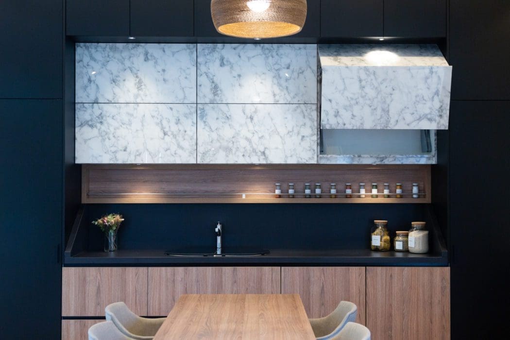 Grâce aux produits REHAU tels que les panneaux de façade RAUVISIO crystal et les bandes de chant RAUKANTEX lumina, le champ des possibles est infini pour combiner esthétique, fonctionnalité et jouer avec la lumière.