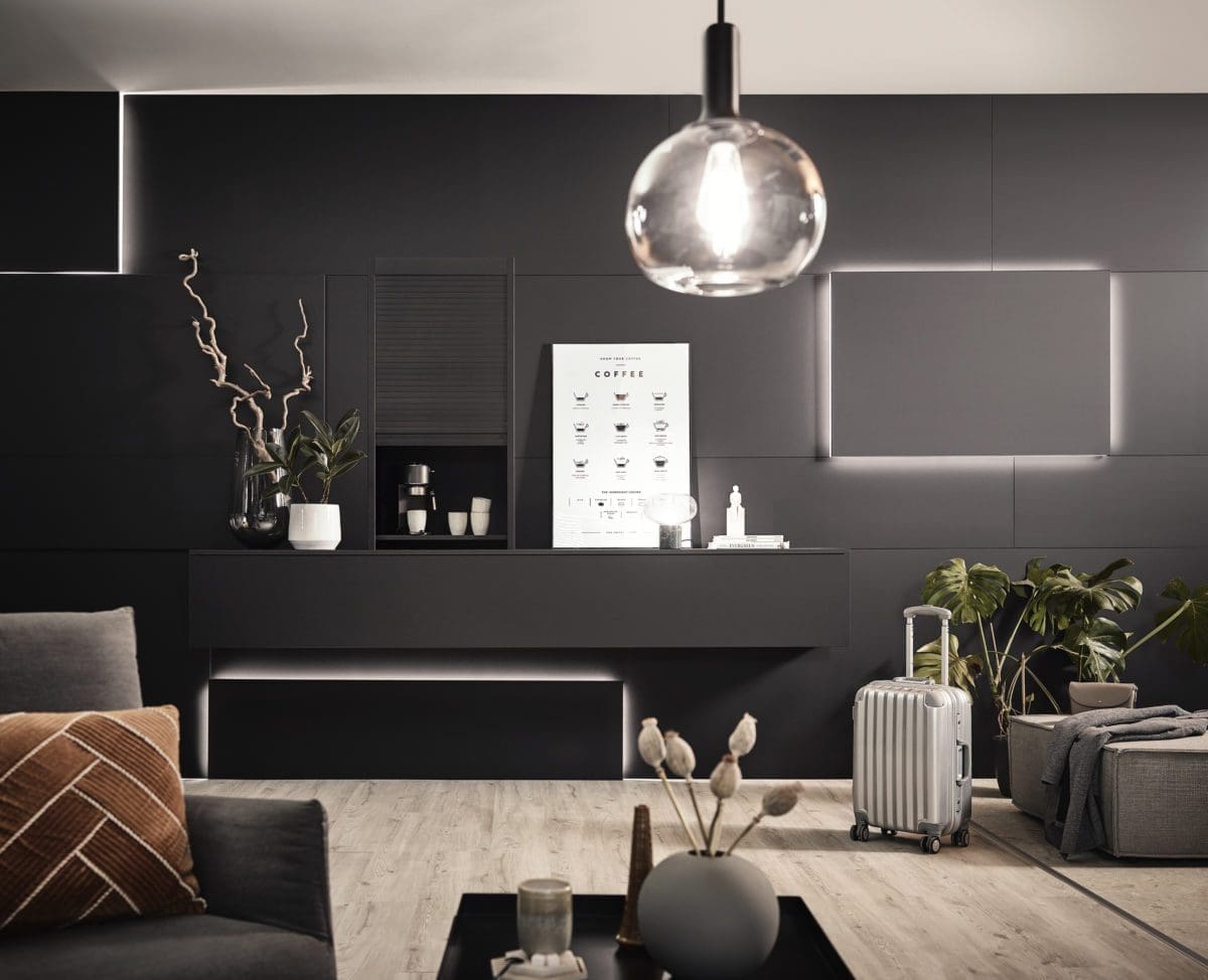 Les bandes de chant RAUKANTEX lumina, quant à elle, sont capables d’absorber la lumière ultraviolette ou artificielle et de la réémettre, créant ainsi des effets lumineux originaux qui donnent vie aux meubles.