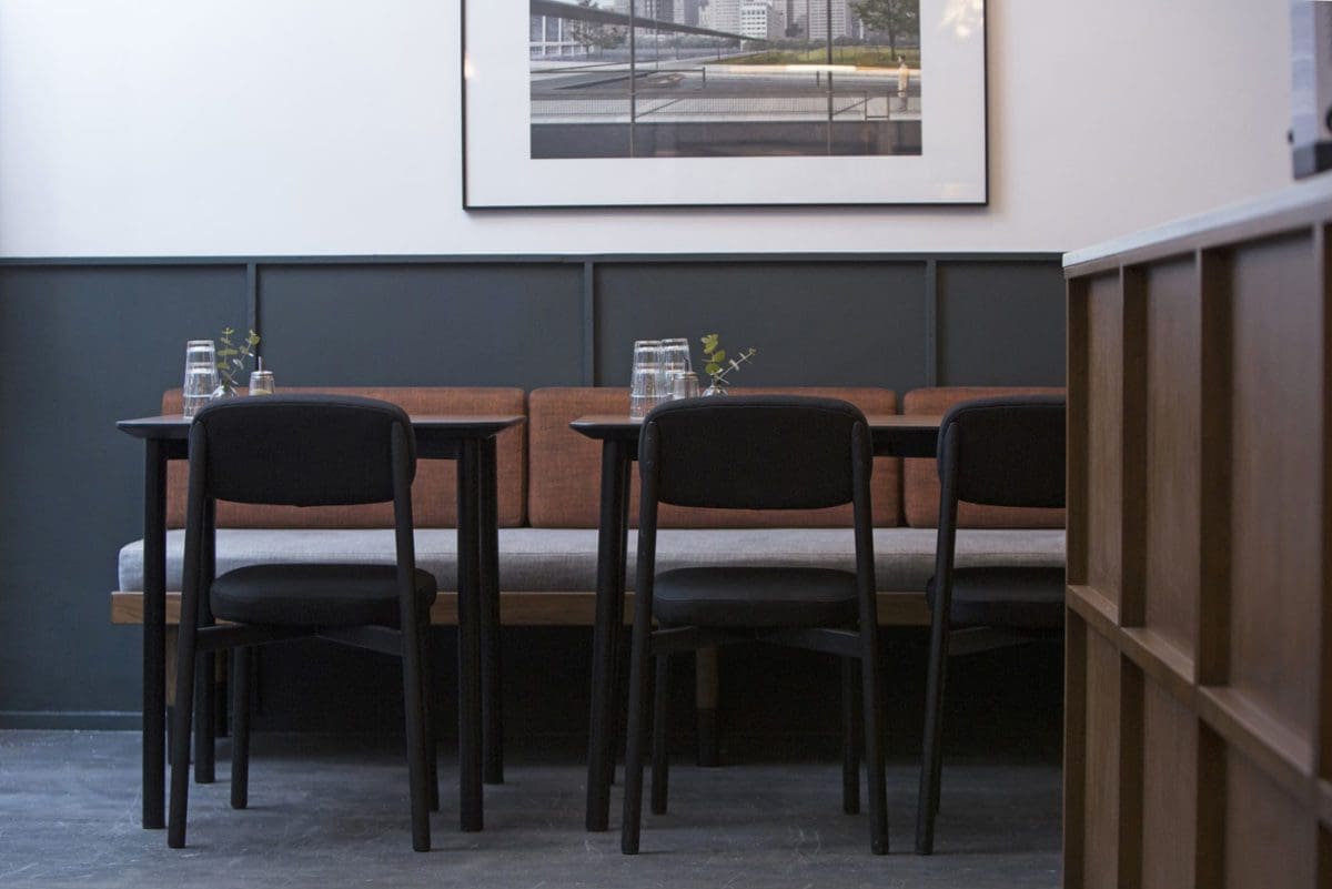 Leur principe est simple, la volonté de créer un lieu pour montrer leurs créations et savoir-faire qui changera de décor tous les six mois. Le café est constitué d’une pièce principale et d’une backroom, parfait pour se mettre dans un espace calme. Illuminé par des suspensions IN The Tube de DCW, ce café vous présente dans un premier temps la collection de tables et de chaises Residence imaginée par Jean Couvreur pour Kann. Tout en sobriété et modernité, ce design s’adapte au choix de Kann pour la mise en place du café.