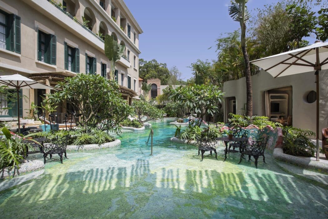 Autour du Rosewood, Alexandre Allard donne peu à peu jour à son projet : végétation luxuriante, boutiques, centres d’expositions, de concerts, galeries d’art et même autres hôtels comme le Soho House, presque terminé. En prime, des constructions hardies, elles aussi quasiment achevées, comme la tour Mata Atlantica de Jean Nouvel, abritant tout à la fois des résidences privées, des chambres et suites d’hôtel dont une en rooftop avec une piscine dominant la ville, ou l’immeuble de bureaux de Rudy Ricciotti, à la façade recouverte d’un impressionnant entrelacs de lianes en béton.