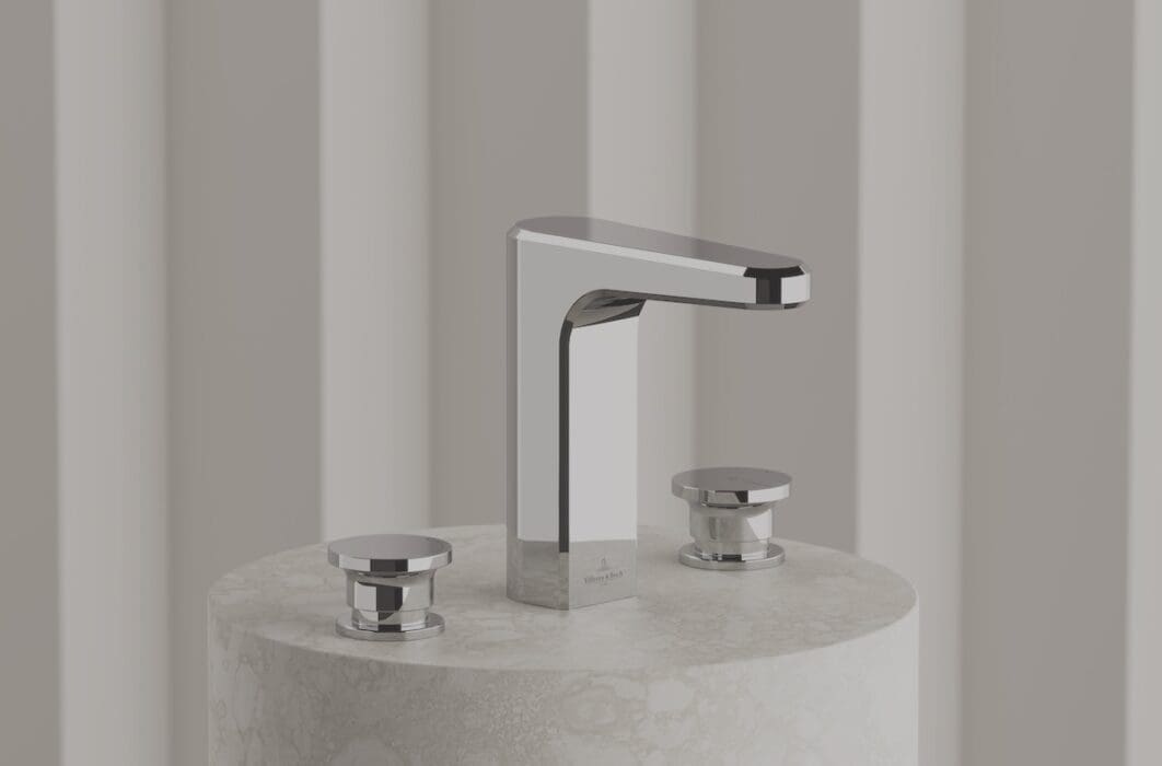 Conçue par le designer Christian Haas, la collection de robinetterie haut de gamme « Vea » combine une esthétique inspirée des galbes classiques à une technologie intelligente (activation de l’eau par pression « ViPush », contrôle de la température par rotation…). À partir de 553 €, Villeroy & Boch.