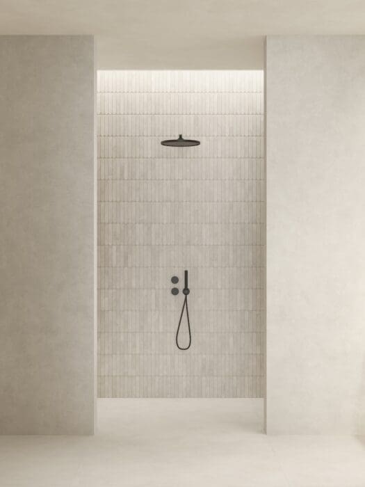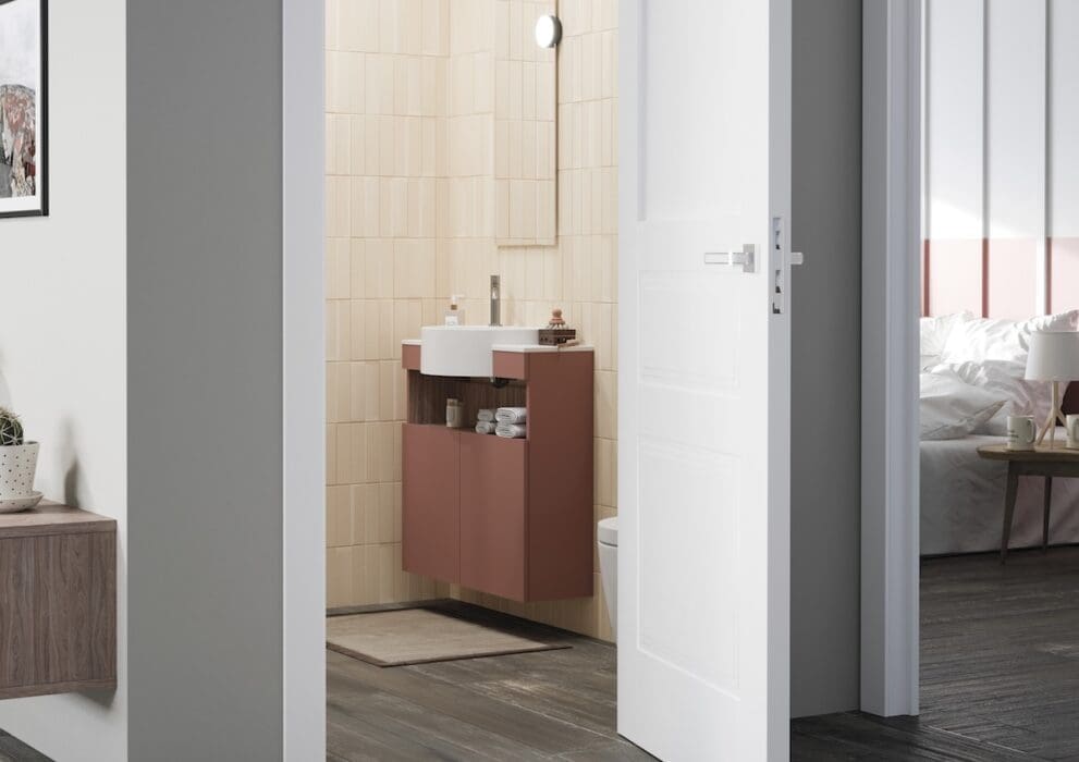 Pour optimiser une salle de bains de petite taille, pas de secret, la clé du succès est d’exploiter intelligemment chaque recoin disponible, sans alourdir l’espace. Pour cela, privilégiez les solutions de rangement suspendues, notamment pour les meubles sous vasques, associés à des colonnes étroites ou des rangements muraux qui utilisent toute la hauteur de la pièce, souvent négligée. Certains fabricants proposent même des meubles d’angle. De quoi profiter d’un maximum de rangements sans encombrer la pièce, afin de préserver un sentiment de légèreté ! Notre conseil déco : opter pour des meubles aux angles arrondis qui adoucissent visuellement l’aménagement et facilitent la circulation. Autre possibilité, investir les zones cachées ou oubliées, en installant, par exemple, des étagères au-dessus de la porte ou des toilettes pour les serviettes, et des rangements escamotables derrière un miroir, et privilégier les façades coulissantes pour dissimuler les produits du quotidien. Si l’épaisseur de vos murs est suffisante, vous pouvez également créer des niches, notamment dans la douche pour ranger discrètement shampoings et autres savons. Ne négligez pas non plus les accessoires ! Un panier suspendu à la paroi de douche, des crochets à ventouses ou des gobelets fixés au-dessus du plan de toilette peuvent aider à libérer l’espace. Enfin, si la configuration le permet, vous pouvez remplacer vos portes battantes par des portes coulissantes pour gagner de précieux centimètres.