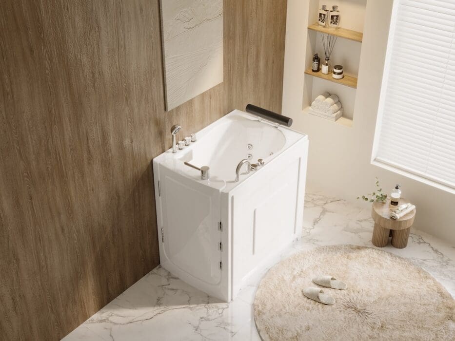 ÇA VA BULLER ! Compacte mais suréquipée, cette baignoire balnéo une place, de seulement 69 par 99 centimètres, est équipée de 10 hydrojets. « Baruva », 1 999,99 €, Vente-unique.