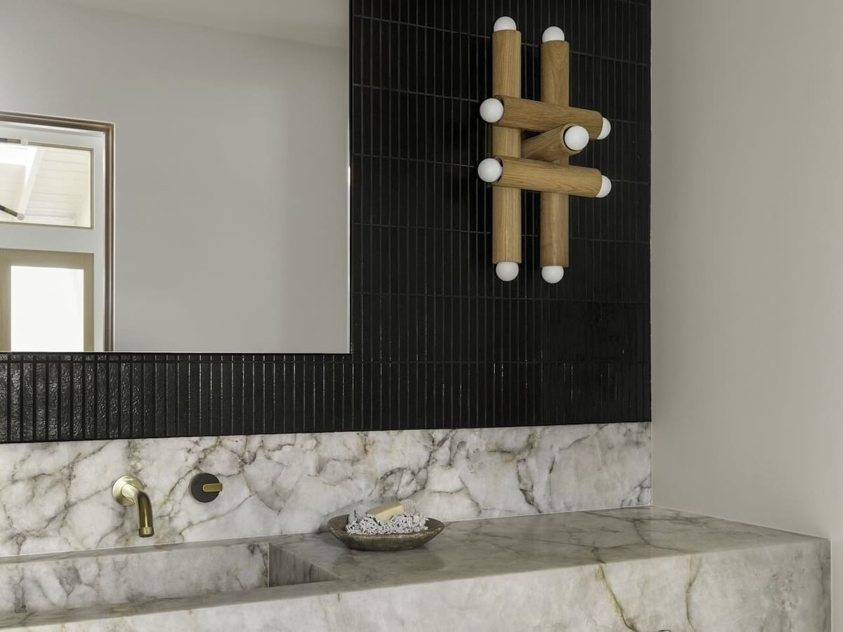 Aussi esthétique que pratique, la vasque totem se distingue par son allure sculpturale et son faible encombrement au sol. Un physique avantageux qui lui permet de libérer les murs pour y installer des rangements verticaux du sol au plafond. Côté look, elle se décline dans une vaste palette de finitions et coloris et s’adapte ainsi à tous les styles d’intérieurs. En outre, de nombreuses vasques totem disposent de leurs propres rangements intégrés, idéals pour dissimuler les accessoires disgracieux, mais indispensables, tels que les brosses à dent, dentifrices et autres cotons-tiges… La vasque à poser, quant à elle, se décline dans des formats compacts qui, associés à un meuble suspendu, permettent d’optimiser le plan de toilette tout en apportant une dimension design et élégante à la pièce. On l’associe de préférence avec une robinetterie encastrée afin de préserver la légèreté de l’ensemble… Le détail qui fait la différence ? Le choix d’un grand miroir pour refléter la lumière et accentuer la profondeur visuelle de la pièce. Pour continuer à agrandir visuellement l’espace, n’hésitez pas à multiplier les sources lumineuses en associant un éclairage principal – suspension ou LED – avec des appliques de part et d’autre du miroir, et, pourquoi pas, des bandes LED sous les meubles ou dans une niche de douche pour