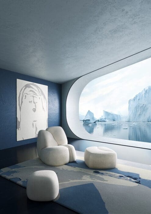En plus de tapis, la collection Grand Nord, réalisée avec l’agence Messieurs, propose également des fauteuils, poufs et ottomans. © DR