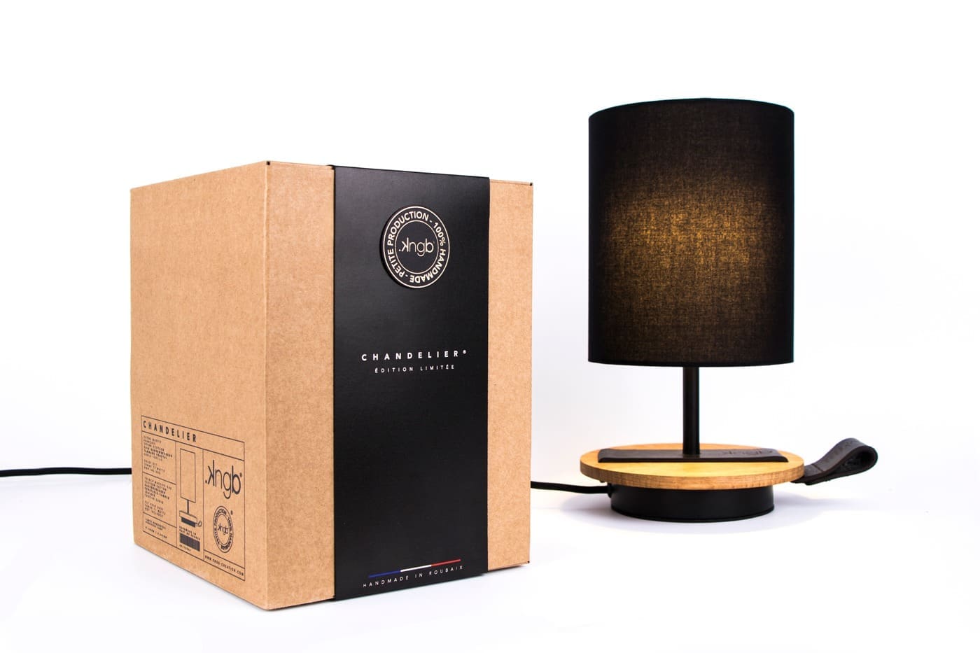 Installés à Roubaix, la patrie du textile nordiste, Natacha Kopec et Gary Berche, jeunes designers trentenaires, créent depuis 2014 des luminaires haute couture qui éclairent avec intemporalité l’artisanat local. Formés chez Poliform, ils associent lignes minimalistes et matières brutes sublimées, chêne brûlé, cuir ou flanelle, 100 % sourcées chez des fournisseurs voisins aux savoir-faire reconnus. Parmi eux, l’éditeur Casamance. Entre deux projets hôteliers, des collab’ arty (Studio Twins Paris) et en attendant une ligne de mobilier, les deux créateurs, loin de se reposer sur leurs lauriers, viennent de lancer leur Kollection B, encore plus engagée. Coup de cœur pour la lampe « Chandelier » fabriquée à la main à partir de chutes de bois récupérées dans leur atelier. Numérotée et joliment packagée, elle fera mouche sous le sapin.
