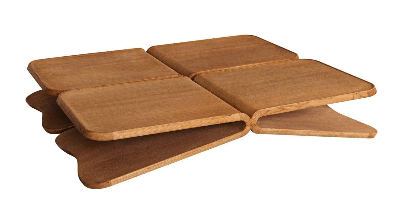 En forme de feuille pliée, cette table basse architecturale en chêne massif, éditée à 30 exemplaires signés et numérotés, fut l’une des pièces fortes de la dernière « Collectible Design Fair » de Bruxelles.