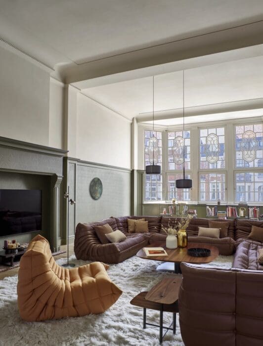 Les salons aux volumes généreux pourront avoir la folie des grandeurs en jetant leur dévolu sur un canapé panoramique. Plus grand que le canapé d’angle, il dispose de 4 places minimum, parfois d’une ou deux méridiennes permettant les positions assises et couchées. Idéal pour les familles nombreuses, il est le canapé confortable par excellence de par ses dimensions démesurées, mais aussi l’un des plus onéreux. Les marques et éditeurs le proposent souvent en version modulable permettant différentes combinaisons : une assise droite, d’angle, en U et parfois même décomposée grâce à ses modules indépendants. Parmi les canapés panoramiques, le modèle en demi-cercle a la cote : son design adoucit le salon tout en le modernisant. Côté revêtement, le cuir signe son grand retour, porté par l’avènement de la couleur marron dans les intérieurs. Long par définition, le canapé panoramique est aussi profond, d’où l’importance d’anticiper son arrivée en ayant conscience de son volume par rapport à l’espace qui lui sera attribué.
