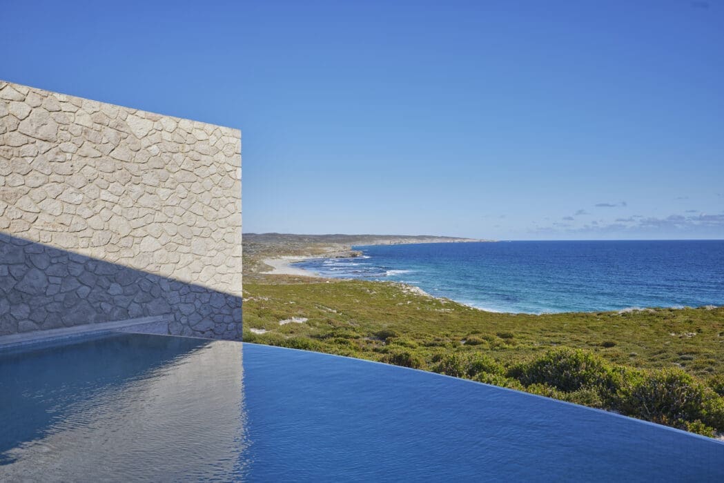 Max, fils de fermiers, élevé sur l’île Kangourou, la troisième plus grande île australienne, quatre fois la superficie de Hong-Kong, mais 4 000 habitants seulement, n’imaginait pas, en devenant architecte, qu’un jour on le solliciterait pour construire sur les falaises dominant la baie de Hanson, au bout du bout de l’île, dans le Sud-Ouest sauvage, un lodge cinq étoiles. À 100 kilomètres de la « ville » principale, Kingscote. Et pourtant, c’est ce que firent en 2006 Hayley et James Baillie, jeune couple tombé amoureux de ces côtes abruptes, fief des lions de mer, où la pluie et le vent complices sculptent les roches, enivrent les hommes, balaient les plages de sable, éliment les grandes prairies où les kangourous jouent littéralement à saute-mouton au-dessus des troupeaux d’ovins à la laine rude et grise. Seuls les caractères bien trempés, les marins, les romantiques, les artistes et les poètes apprécient ces ambiances et ces paysages tourmentés qui chavirent l’âme. Comme les Baillie qui, en 2002, parviennent à négocier 100 hectares de lande. Quatre ans de palabres, de démarches avant d’entamer la construction. Quatre ans aussi pour affiner leur projet qu’ils souhaitaient le plus écoresponsable possible pour ne pas impacter l’écosystème insulaire à l’équilibre fragile. Max Pritchard, qu’ils ont choisi pour les accompagner, adhère à leur vision et élabore, avec des experts, ses plans en ce sens, ancrant les bâtiments sur 1 % seulement de la surface acquise, les dessinant les plus plats possible, invisibles, sans prise au vent, en suivant l’inclinaison naturelle du terrain de calcaire blond et orientant les 25 suites vers l’océan. Ce qu’ignorait Max, malgré les milliers d’hectares de Kangaroo Island qu’il avait vu partir en fumée durant les étés de grande sécheresse de son adolescence, c’est qu’en février 2020, 12 ans après l’inauguration du Southern Ocean Lodge, les flammes excitées par des vents violents détruiraient en quelques heures son œuvre. Adieu les jolis murs aux pierres taillées à la main et aux courbes voluptueuses, adieu les suites au mobilier épuré et aux textiles rappelant les dessins aborigènes. C’était compter sans l’énergie des Baillie.