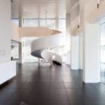 Puig (prononcez « poutch », c’est du catalan), groupe familial de cosmétiques et de parfums qui cartonne avec One Million et Invictus qui comptent parmi les meilleures ventes du marché -, avait déjà conquis les Champs-Elysées avec son nouveau siège en 2013. Pour fêter dignement ses 100 ans en 2014, Puig vient de s’offrir un tout nouveau siège à Barcelone – ville où le groupe est né en 1914 pour distribuer des produits cosmétiques. Cette tour Puig a été conçue par le premier architecte espagnol à être lauréat du fameux prix Pritzker, Rafael Moneo. Comme à Paris, l’idée est celle d’un contenant minimaliste à la lumière douce où traînent de-ci de-là des « Barcelona » de Mies van der Rohe. On y retrouve bien sûr le fameux escalier, – élémebnt symbolique et emblématique du groupe.
