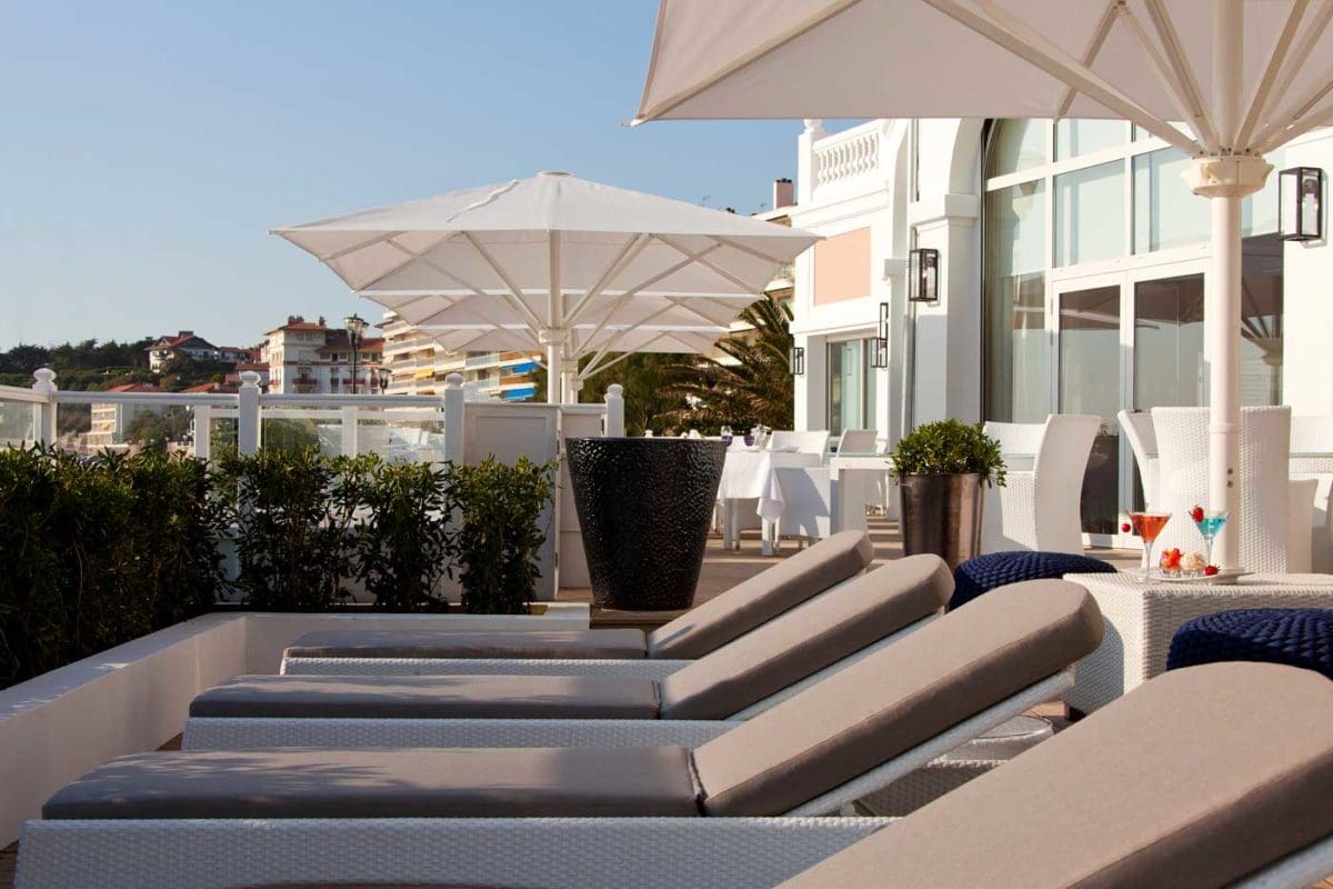 Rénové par l’architecte d’intérieur Patrick Ribes dans un style Art Déco, le Grand Hôtel Thalasso & Spa renaît, tout en élégance et sobriété. Situé face à la baie de Saint-Jean-de-Luz, ce 5 étoiles offre une vue à couper le souffle sur l’océan Atlantique. A l’intérieur, 52 chambres, suites et appartements et un centre de thalasso à l’eau de mer : éclairage violet et fauteuils baroques ornés de coquillages rappelant un boudoir où il fait bon se prélasser été comme hiver. Côté palais, Christophe Grosjean est aux commandes du restaurant L’Océan, une des meilleures tables de la région. L’occasion de déguster de délicieux poissons accompagnés de beaux produits qui évoluent au gré des marées et de l’inspiration du chef.