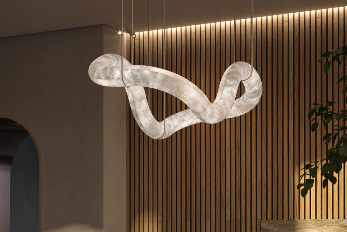 Repoussant les limites de la création contemporaine de luminaires, la nouvelle pièce d’Atelier Alain Ellouz transfigure l’albâtre pour architecturer les intérieurs avec singularité.