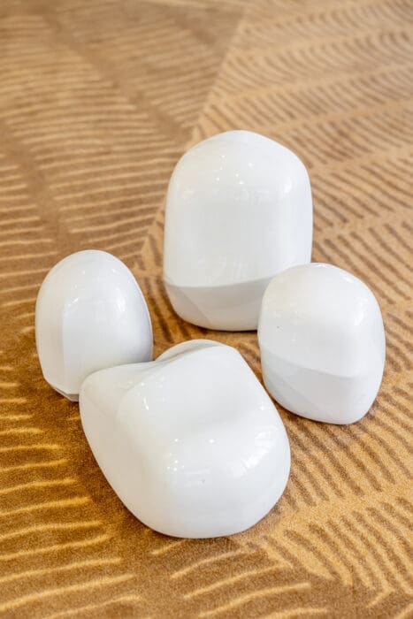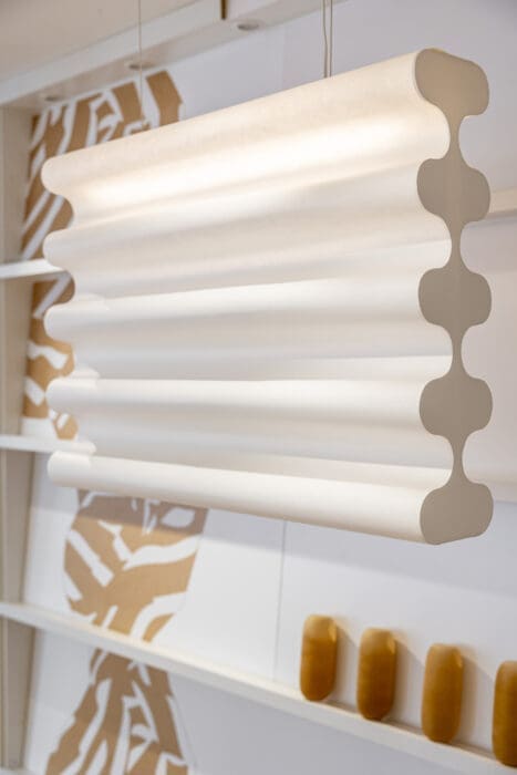 Passionnée par la revalorisation des matériaux et par les processus de fabrication, Elsa Pochat imagine une scénographie qui se pose comme une réponse au réchauffement climatique. Elle valorise les circuits courts, l’artisanat et l’innovation comme vecteur de changement. Dans sa scénographie, la designer présente plusieurs projets dont trois sont issus de collaborations.