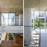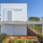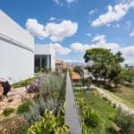 L’intégration d’espaces verts dans la maison intègre la plantation de jardins sur 60% du rez-de-chaussée, l’utilisation de la terrasse verte au premier étage, la mise à disposition de paysages adaptés aux abeilles et de 40 espèces de fleurs sauvages indigènes. Toutes les zones à l’intérieur s’écoulent sur les espaces extérieurs et s’organisent autour d’une cour centrale verte placée entre deux volumes cubiques blancs. Faire de la place à la nature en ville apporte non seulement de la beauté au tissu urbain, mais encourage le retour des espèces d’oiseaux et des abeilles locales en maintenant ainsi la biodiversité urbaine; en outre, il favorise la santé et le bien-être humains.