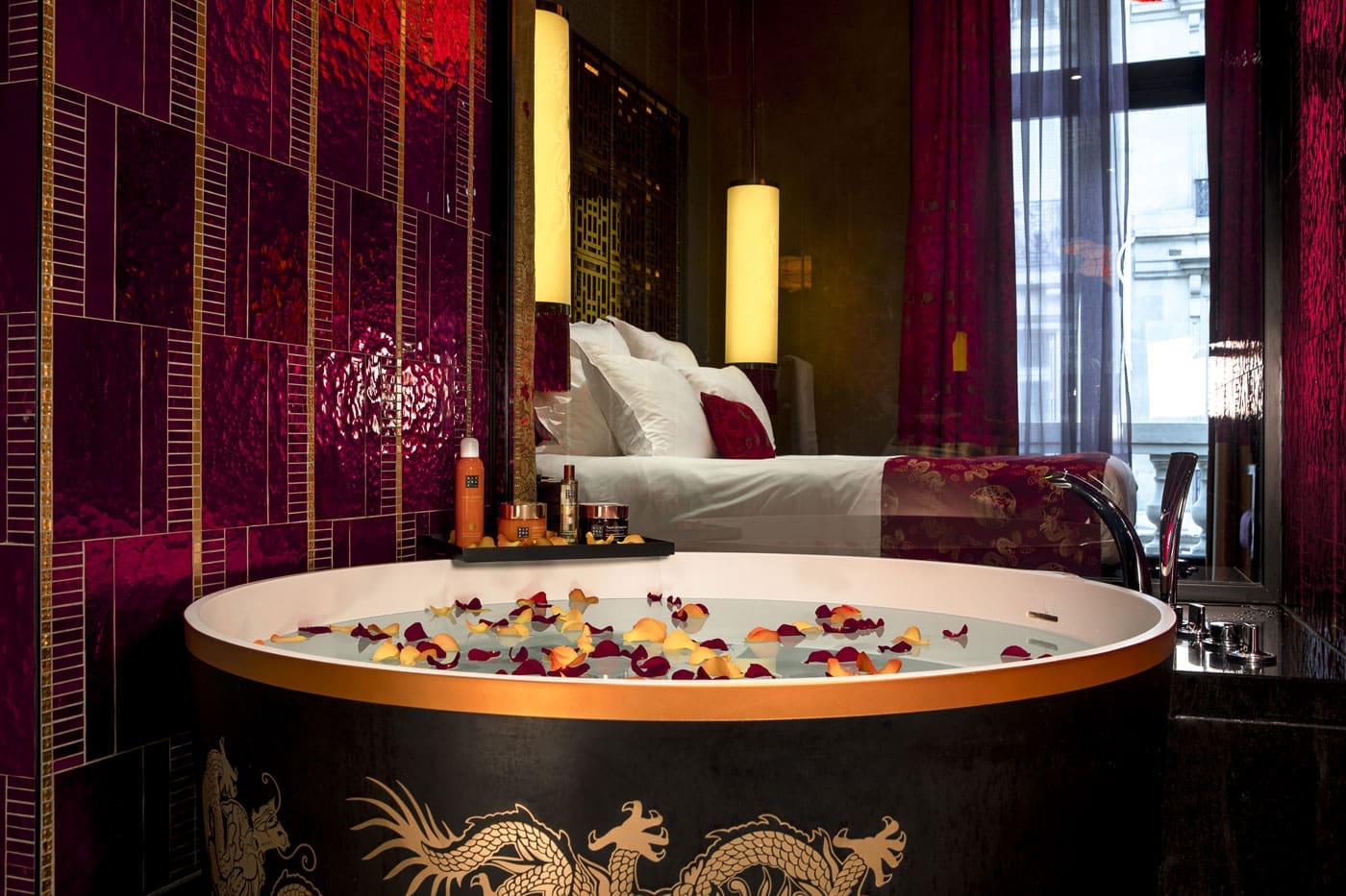 L’établissement Buddha-Bar Hotel Paris est le parfait mélange entre l’excellence à la française et les codes asiatiques du bien-être. Sa collaboration avec Rituals, qui se concentre sur les traditions orientales et ancestrales afin de transformer votre routine soin du corps en moment de détente absolue. Le célèbre Buddha rieur répandait la joie, ainsi, il inspira le Menu du Bain, « The Ritual of Laughing Buddha ».