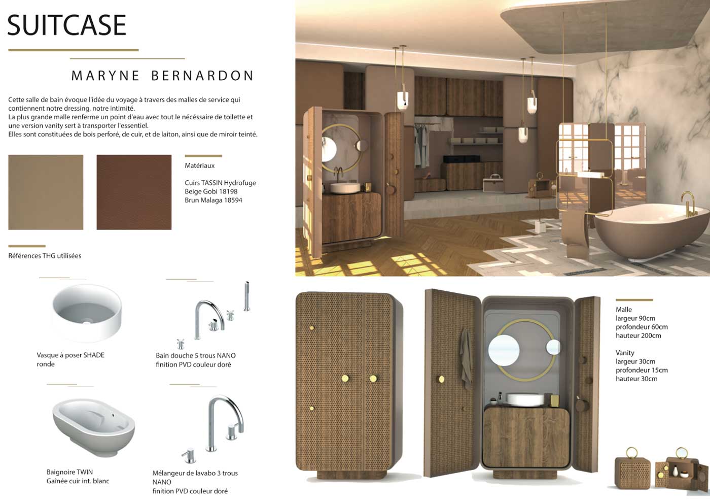 Depuis 1956, le fabricant français de robinetteries et d’accessoires de bains haut de gamme, THG Paris, évoque à travers ses collection « le luxe à la française » et sélectionne avec soin des matières de haute qualité pour créer des pièces d’exception. A l’occasion d’un concours basé sur le défi créatif, la maison souhaite mettre en avant les designers de demain en exposant « la salle de bain de demain », imaginée par 15 étudiants de l’ESAM- Ecole Supérieure des Arts Modernes, élèves de quatrième année spécialisés en architecture d’intérieur.