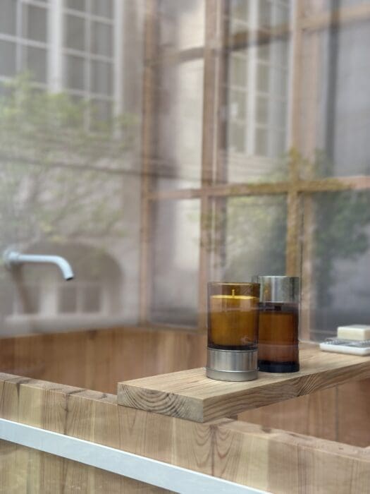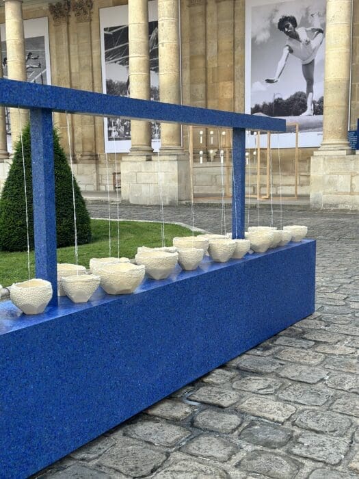 Dans le très chic cadre de l’Hôtel de Soubisse, la non moins chic installation du designer Lucas Huillet et du parfumeur Alexandre Helwani offre au spectateur une expérience olfactive en trois temps, dans le but de simuler la fraîcheur : d’abord par la sensation immédiate, forcément mentholée, ensuite par l’élaboration de l’odeur de l’ombre, enfin par la définition d’une fragrance qui définirait la couleur de l’eau. Passé l’effet d’annonce, le résultat est bluffant. Poétiques et sensibles, des bols en céramique tournée sont confrontés à du plastique recyclé monté en meuble – fontaine. Le projet, ancré dans l’époque par ses préoccupations écologiques, voit ses qualités de réflexion et de réalisation tenir toutes ses promesses.