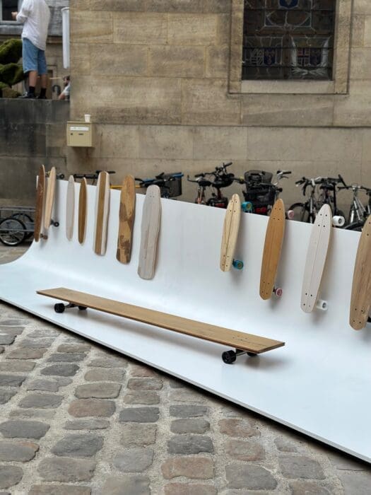 La filière bois (Fibois) expose quant à elle les lauréats de son concours annuel. De la planche de skate au projet d’un banc public, donnant à la bibliothèque historique de Paris un air de fête !