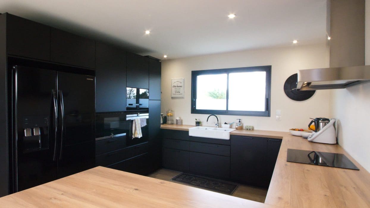 Ce superbe vestige du bâti ancien permet de gagner l’étage, et notamment la suite parentale. Sous les toits dans la chambre d’enfant, dans la pièce d’eau de l’une des chambres d’hôtes, en façade… le concessionnaire Trabeco Loire-Atlantique a fait la part belle aux pans de pierres apparentes conservées et soigneusement rénovées. Ces pans se fondent harmonieusement entre leurs nouveaux murs, et apportent cachet et authenticité au décor épuré et contemporain choisi par la cliente. Grâce à de larges baies vitrées à galandage, le rez-de-chaussée dialogue avec des extérieurs pensés comme prolongement naturel de la maison, avec terrasses en bois et piscine. Non contentes d’encadrer à merveille le paysage, ces ouvertures baignent de lumière les espaces intérieurs, de la cuisine au bureau cloisonné par une verrière, et complètent le confort thermique d’un chauffage au sol. Preuve s’il en est que les exigences d’une rénovation peuvent être conciliées avec celles des maisons contemporaines signées Trabeco : espace, lumière et confort. Un vrai luxe !