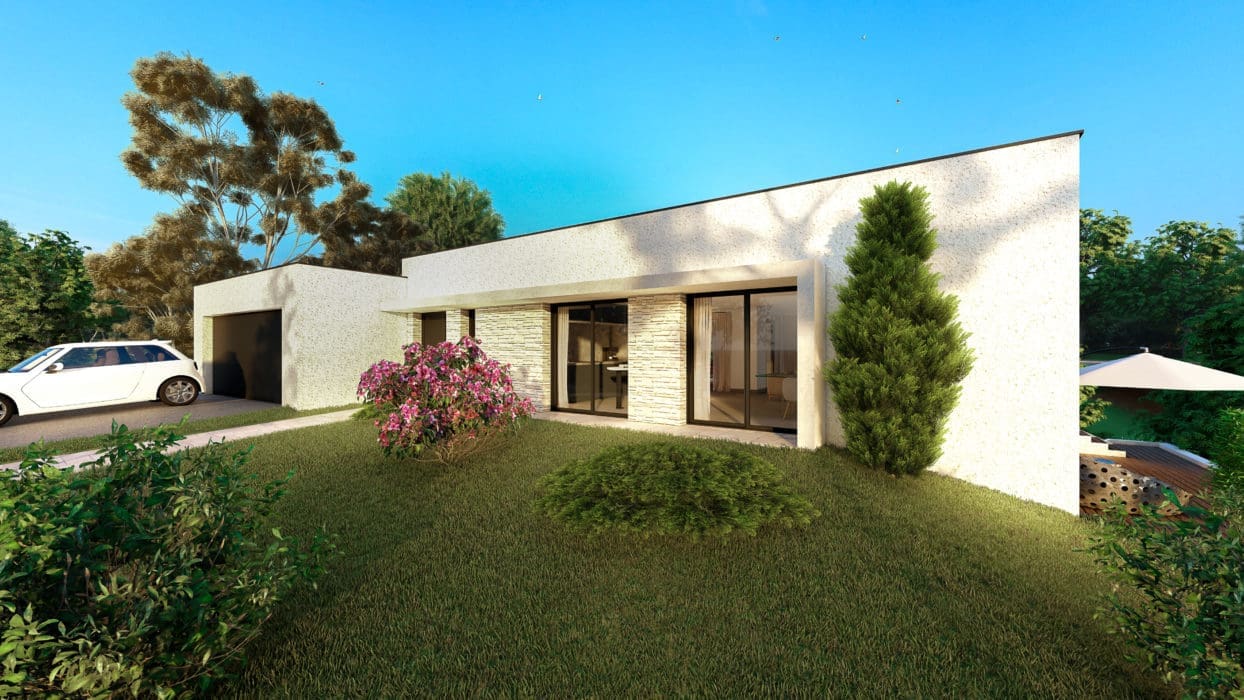 Entièrement paysager, l’espace extérieur, orchestré autour d’une piscine de 4 mètres sur 9, se déploie vers l’arrière de la construction, garantissant l’intimité des propriétaires. Résolument contemporaine, avec ses volumes sobres et épurés habillés d’enduits de façade et de parements en pierre, coiffée de toitures-terrasses végétalisées, cette maison à l’esprit minéral se fond parfaitement dans la campagne alentour. Réparties sur plusieurs niveaux, les terrasses, de 100 m2 au total, permettent de multiplier les points de vue et de profiter de chaque moment de la journée aux beaux jours. Les vastes pans de surfaces vitrées (elles représentent 20 % des façades) achèvent de fondre ce lieu de vie d’exception dans son environnement, en gommant la frontière entre dehors et dedans. L’intérieur profite en prime de ce généreux apport de lumière, augmenté par un éclairage zénithal apporté par des fenêtres de toits Velux® et une triple orientation dans la grande pièce de vie. Dotée de menuiseries en aluminium et PVC anti-effraction à hautes performances thermiques et acoustiques, d’un gestionnaire bioclimatique des occultants avec centralisation et d’une pompe à chaleur avec plancher chauffant, cette habitation familiale est enfin connectée et peu énergivore. Sans pour autant faire l’impasse sur le style ! Dans les chambres, une suite parentale de 22 m2 et deux vastes espaces nuit de 14 m2, un parquet stratifié chanfreiné grand passage apporte une note chaleureuse, tandis que dans les pièces d’eau faïence toute hauteur et robinetterie thermostatique noire Porcelanosa signent un vrai sens du raffinement.