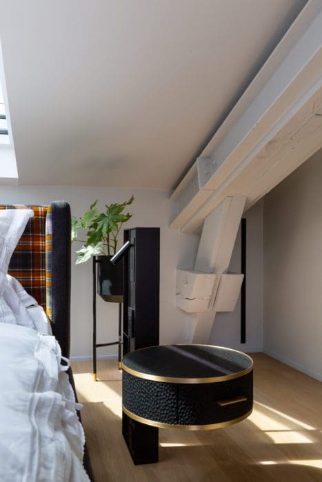 Les acquéreurs n’ayant pas de relations dans le monde architectural, ils interrogent la gestionnaire de la cité, qui leur indique quelques noms. Le couple sélectionne alors quatre agences, leur proposant, si le projet les intéresse, de participer à un concours dont il fixe les règles. « Lauréats, explique Stéphane Satorra, du Studio Klein, nous nous sommes parfaitement entendus avec cette famille soucieuse de respecter le passé de ces ateliers et de ne pas développer un projet ostentatoire. Le fait que notre studio d’architecture d’intérieur soit implanté cité Klein depuis 2019 a sans doute légèrement joué en notre faveur, mais nos clients ont surtout été sensibles à notre envie de mettre en valeur le patrimoine, de jouer sur les volumes, d’utiliser des matériaux bruts, naturels, contrastés, et de faire appel à des artisans très spécialisés avec lesquels nous avons l’habitude de travailler. »