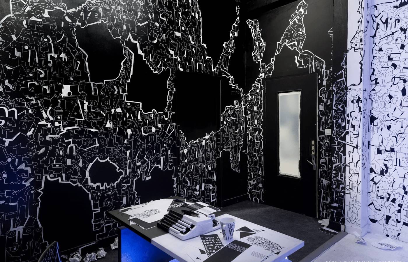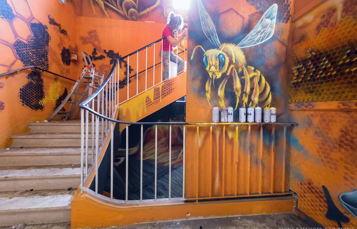 Comme dans le labyrinthe de Dédale, on se perd sur 4 niveaux de création. Le fil d’Ariane de ce lieu unique ? Une réflexion sur le travail. Le travail cloisonné, organisé, hiérarchisé, contrôlé du XXe… qui a laissé place au travail de l’artiste, fait de rencontres, d’échanges et d’inventions. Chaque participant est partie prenante de cette œuvre en perpétuel mouvement, résultat de la collaboration d’une centaine d’artistes locaux, nationaux et internationaux.