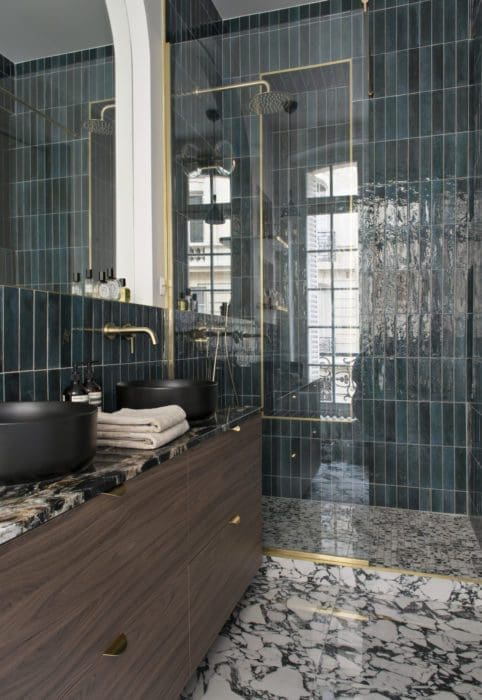 Imaginer le nouveau cadre de vie d’une famille interpelle les architectes. Lorsqu’après leur acquisition, les parents d’une tribu de cinq enfants contactent Nicolas Bossard, ce dernier est enthousiaste. L’appartement traversant donne à la fois sur le square de la Tour-Maubourg, proche des Invalides, une impasse et un jardin planté de grands arbres. Cette localisation lui vaut une exposition ensoleillée et une vraie luminosité, alors qu’il se situe au premier étage. « L’intérêt du projet, explique le décorateur, était de s’appuyer sur les qualités du bien, belle hauteur sous plafond de 3,10 mètres, moulures, corniches, cheminée, tout en lui apportant une touche de modernité avec du mobilier design et une palette de couleurs actuelles.» Les clients souhaitaient aussi créer une quatrième chambre afin que tous leurs enfants soient à l’aise.
