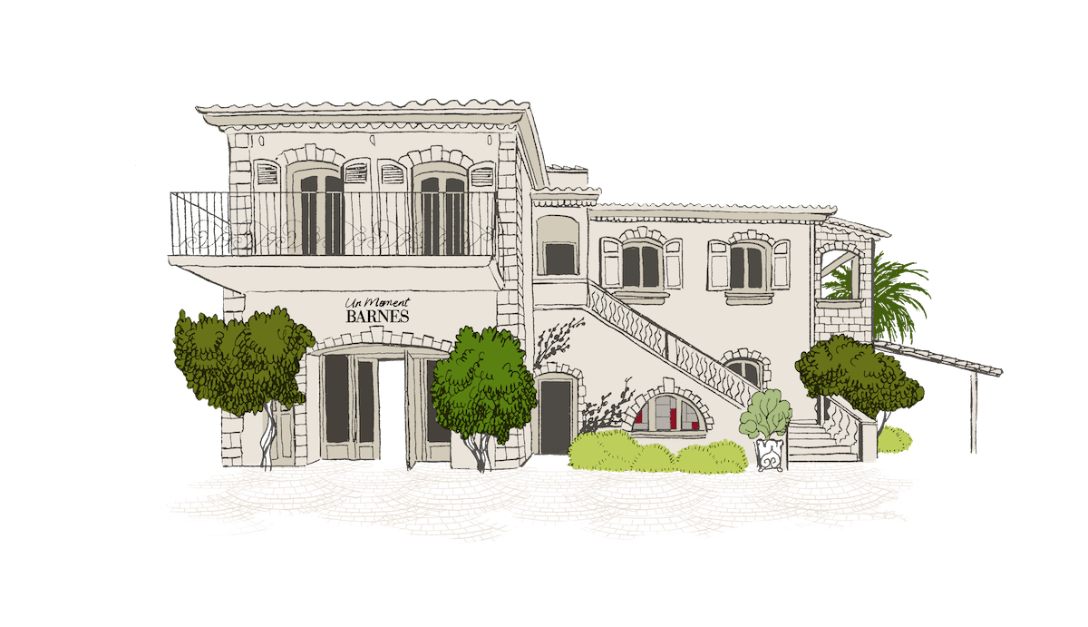Mougins, forte de 18 000 habitants, est une commune très étendue, un puzzle de quartiers. Celui de Saint-Basile, avec seulement 4 500 résidents dont la moyenne d’âge tourne autour de 40 ans, est l’un des plus jolis, très résidentiel, avec ses nombreux jardins, et ses jolies villas. Une localisation idéale pour Un Moment Barnes : savourer la carte méditerranéenne du chef Thomas Letellier, organiser une dégustation de vins entre amis sous la houlette du caviste, disputer avec fortes exclamations imagées une partie de pétanques, dégoter un livre à la librairie, sur le golf, le yachting, le design, etc. Et qui sait, trouver la maison de ses rêves, grâce aux conseils avisés de l’équipe de Caroline Metout, directrice de l’agence.