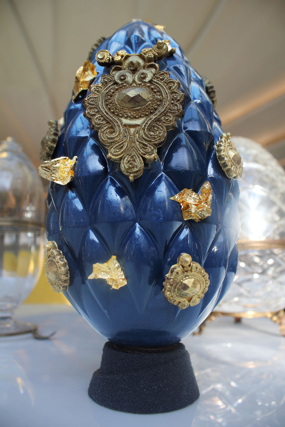 Bryan Esposito, étoile montante de la pâtisserie française, revisite l’œuf de Pâques ! Le chef nous propose une véritable oeuvre d’art composée de chocolat ivoire et noir 70%, dégustez un œuf de 25 cm ornementé et posé sur un socle précieux. Cette création est habillée d’un bleu profond irisé, rappelant le plumage mystérieux de la pie, emblème du Collectionneur. Des joyaux sculptés et des feuilles d’or ornementent cette luxueuse gourmandise et font écho aux trésors chinés par cet oiseau espiègle.