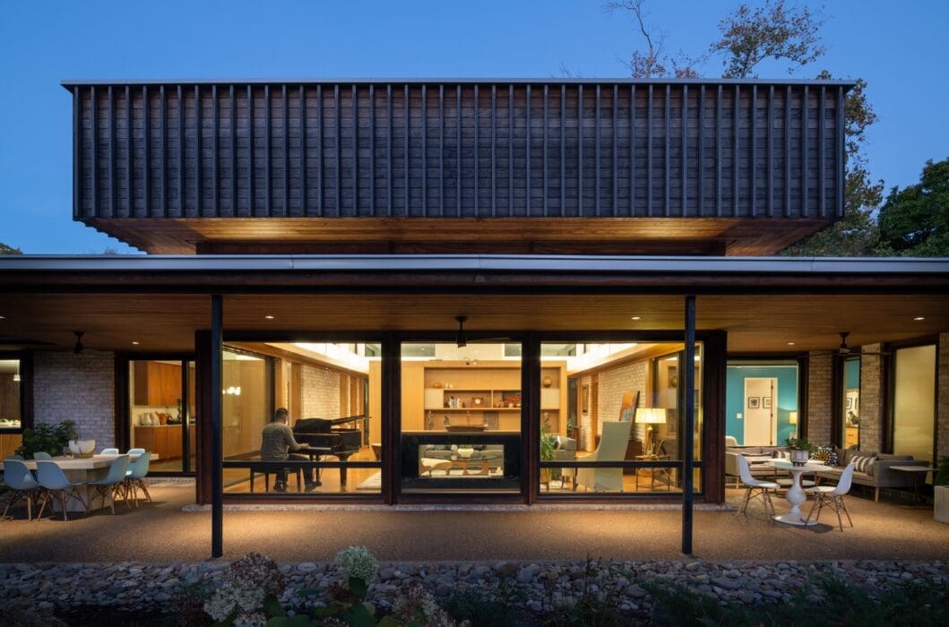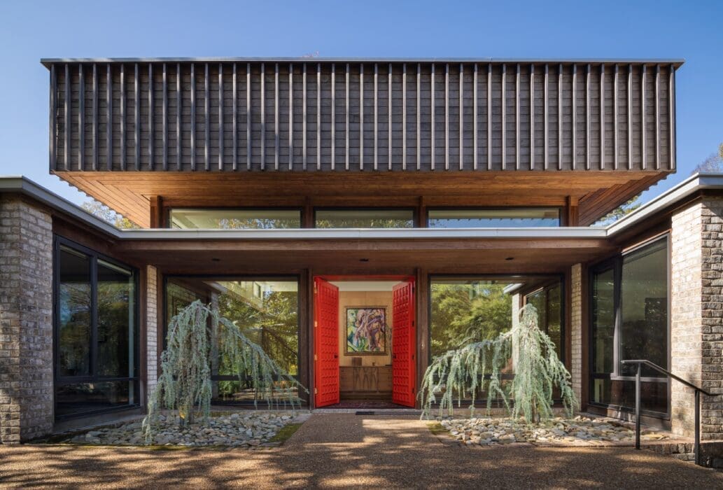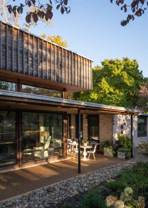 Pour donner du peps à ce ranch authentique ceint d’un jardin, construit à Nashville, Tennessee, dans les années 1950, le studio Michael Goorevich Architects l’a coiffé d’un double toit surdimensionné. Chapeau !