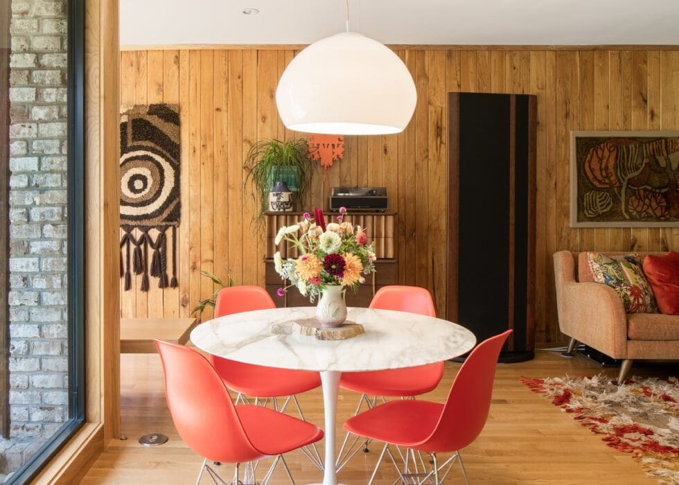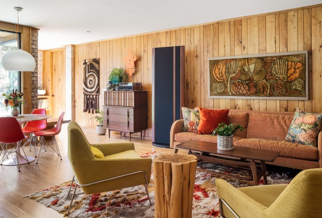 Dégotter cet incroyable ranch daté de 1956, d’une surface de 445 m2 avec cinq chambres et un jardin, à Belle Meade, proche banlieue de Nashville, à deux pas des studios d’enregistrement les plus célèbres au monde, où tous les plus grands du rock, du blues et de la country, surtout, ont enregistré et enregistrent encore… une chance. Une chance saisie par Amy et Craig Clark, parents de deux garçons et ayant pour maître un chien – et non le contraire, confient-ils en riant. Elle est artiste autodidacte, peintre et sculptrice, lui audiophile érudit, pianiste et guitariste à ses heures. Tous les deux sont psychologues pour enfants par passion. C’est une famille amoureuse de sa ville, de son ambiance, des multiples possibilités qu’elle offre, et qui, dès sa première visite, a eu un coup de foudre pour cette construction un peu de guingois mais dans laquelle Amy s’est immédiatement projetée : « Je devinais que les nuits seraient douillettes, et les jours de soleil au bord de la piscine heureux. Que nous disposerions tous de suffisamment d’espace pour nos lobbies et nos activités. »