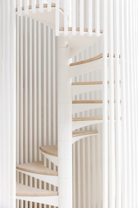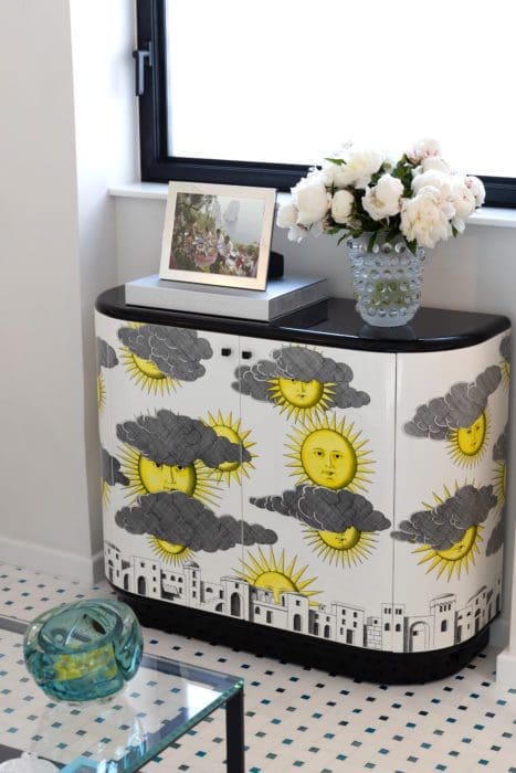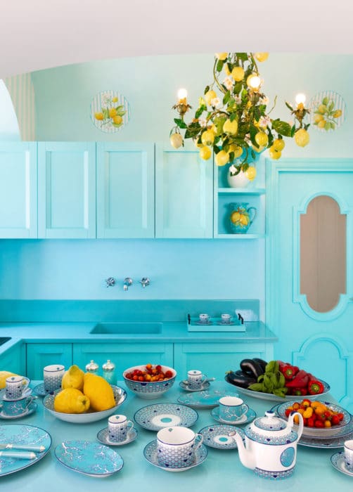 Coup de foudre quasi immédiat pour la situation exceptionnelle, l’accès direct, par une volée de 25 marches, à la plage privée dotée d’un des meilleurs restaurants de l’île. Et, surtout, coup de foudre pour la demeure datant de 1902 avec ses murs épais, rustiques, ses pièces enveloppantes. 100 mètres carrés très sains, qui nécessitent avant tout un nettoyage du sol au plafond et un grand rafraîchissement. « Nous l’avons, sans hésitation, baptisée Casa Sabrina. » Construite en espalier, sur trois niveaux, elle ressemble à un yacht avec ses terrasses deck. Sabrina l’aborde donc, avec la complicité de son mari, architecte naval, comme un bateau de croisière. Le pont supérieur avec vue panoramique devient un solarium au sol tapissé de galets. Le second joue les terrasses du salon. C’est à ce niveau aussi que Sabrina implante sa chambre, de petite surface mais disposant de grands rangements qu’elle dessine. Sur le dernier deck, le plus bas, Elsa et Carla, 28 et 30 ans, les deux filles du couple qui travaillent avec leur maman, se partagent la seconde chambre aux couleurs très girly avec un mur recouvert de fleurs vives, peintes par l’artiste italienne Francesca Marabini. « Nous avons conservé les structures à l’identique, sans casser aucun mur. J’aime dire que nous avons procédé à un nettoyage de printemps pour la rendre pimpante, joyeuse, agréable à vivre. » Sabrina apporte tous les matériaux, céramique, tissus, sanitaires, meubles faits sur mesure pour la Casa. Elle chine chez les antiquaires et les brocanteurs des objets, notamment des céramiques typiques de cette région. Puis elle choisit, pour effectuer les travaux d’embellissement, des entreprises locales qui travaillent dans le respect de l’environnement et du style de Capri. « Les artisans d’ici savent déjouer les aléas propres aux îles, et plus particulièrement à celle-ci, très escarpée. J’avoue que leur savoir-faire et leur débrouillardise m’ont plus d’une fois sidérée. Ils ont par exemple réussi à transporter et installer un miroir hors norme dans le salon. Ou encore à fixer à la perfection le magnifique escalier extérieur allant d’un deck à l’autre conçu par mon mari. »