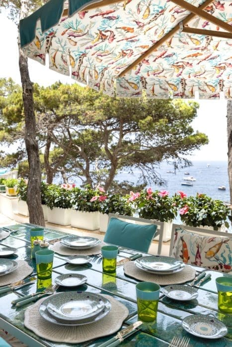 Face aux Faraglioni, les rochers géants symboles de Capri, Sabrina Monteleone-Oeino, décoratrice, a déniché une maison surplombant la mer et la plage, qu’elle a faite sienne.