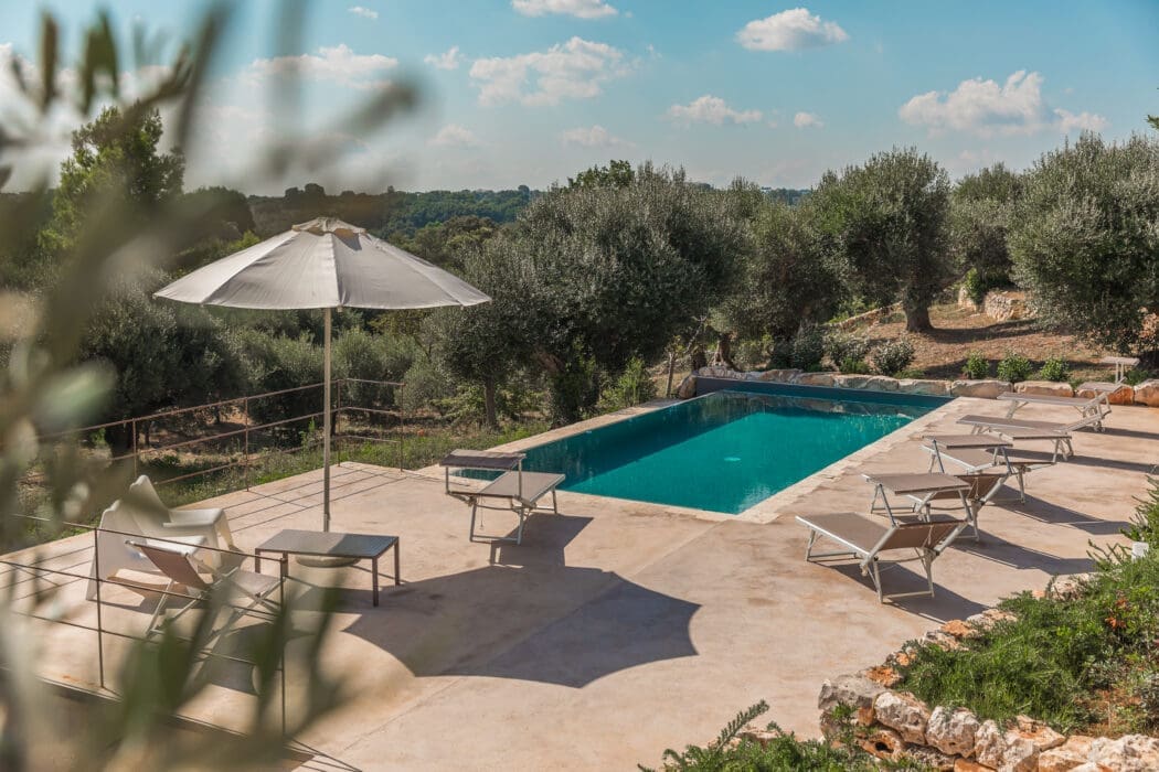 Une fois l’intérieur remis aux normes, Nadiya Yamnych a veillé à ce que la pergola où, l’été, il fait bon flâner et dîner soit elle aussi coiffée naturellement avec des canisses et ceinte de murets de pierres sèches. À la limite de l’oliveraie, pour que la piscine se fonde dans le paysage et soit en harmonie avec le trullo, elle a choisi de carreler la margelle avec du chianca, pierre aussi douce que du talc aux pieds nus des baigneurs. Assurément, le trullo Silvano, comme par magie, ressemble de nouveau au repaire d’une gentille fée.