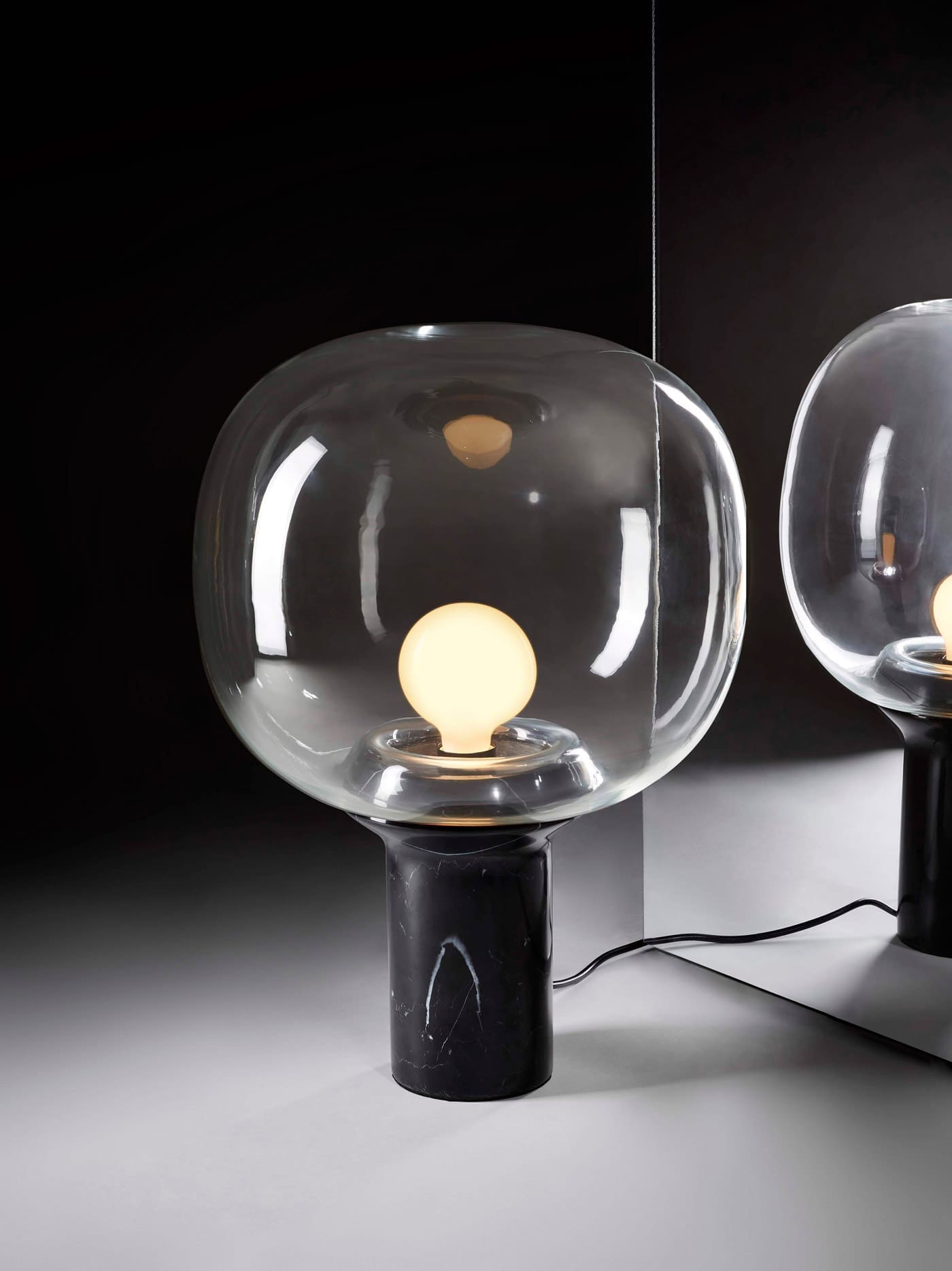 Conçue en exclusivité par Samuel Wilkinson pour The Conran Shop, cette lampe est en verre soufflé à la bouche. Cette bulle de verre enveloppe délicatement la base faite de marbre. Un objet au design doux et épuré, une source de chaleur et de douceur pour éclairer vos nuits.