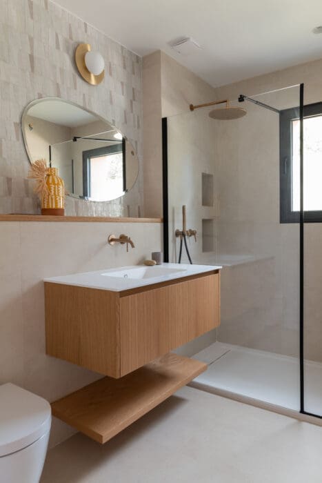 Le point fort de cette maison, outre son cadre de vie idéal, est la réalisation des travaux gérée par une entreprise générale avec laquelle collabore régulièrement Transition Interior Design. D’ordinaire parisienne, Bota a accepté de faire le déplacement dans le Midi pour réaliser chaque centimètre carré du gros œuvre intérieur de ce projet pensé de façon globale par Margaux Meza et Carla Lopez. Les deux architectes d’intérieur ont eu à cœur de parfaire le moindre détail. Zéro mauvaise surprise, la maison est aboutie et se révèle aussi juste que celle imaginée, sinon mieux.