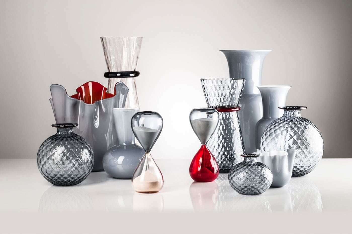 La ligne TRIO, de Monica Guggisberg et Philip Baldwin, ainsi que TRANSPARENTI DI ZECCHIN, qui rend hommage au précurseur du nouveau verre, Vittorio Zecchin, se jouent des formes et des couleurs pour révéler avec sobriété, des silhouettes fantasques.