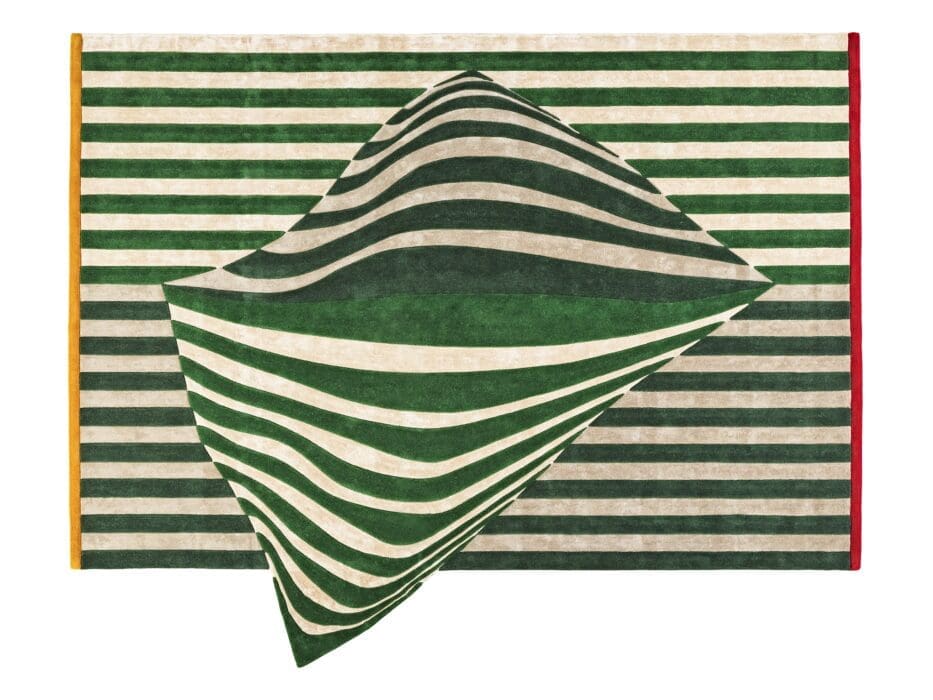 La collection de tapis Postcards a véritablement marqué l’édition de Downtown Design Dubai. Elle réunit Hands Carpets, un atelier indien patrimonial, réputé pour son excellence artisanale et le duo Doodle and the Gang, fondé par les sœurs Mentalla et Asmaa Said. Ensemble, ils signent une série sophistiquée de tapis noués et tuftés main, ainsi que des tentures murales éblouissantes.