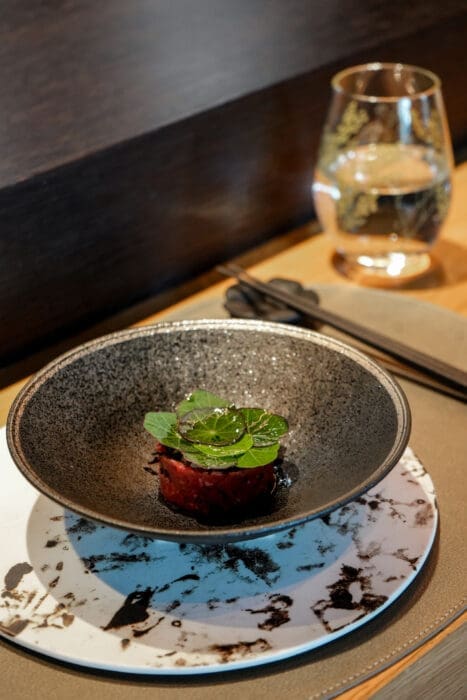 Aux commandes du premier restaurant omakase de la ville médiévale posée sur le lac des Quatre Cantons, le chef japonais Yutaka Kobayashi compose ses menus en tête-à-tête avec ses convives, jonglant entre des ingrédients de première qualité et un art de la table sophistiqué soulignant chacune de ses créations. « Je suis devenu chef par amour du voyage, pour parcourir le monde. Né à Saitama, préfecture jouxtant Tokyo au nord-ouest, sans accès à la mer, je rêvais de partir au-delà des océans, de quitter mon pays. Après quelques années à Tokyo notamment, j’ai étudié les cartes, consulté des documents et, très vite, j’ai été attiré par la Suisse. J’y suis depuis dix ans et m’y sens comme chez moi. Le cadre cosy, minimaliste, du Minamo, m’autorise chaque soir à converser avec les hôtes, à échanger vraiment. Un vrai honneur, un vrai bonheur. »