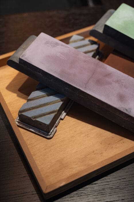 Difficile à maîtriser pour conserver un tranchant parfait et des couteaux en bon état. On peut suivre une formation pour acquérir technique et coup de main. À partir de 50 € la pierre.